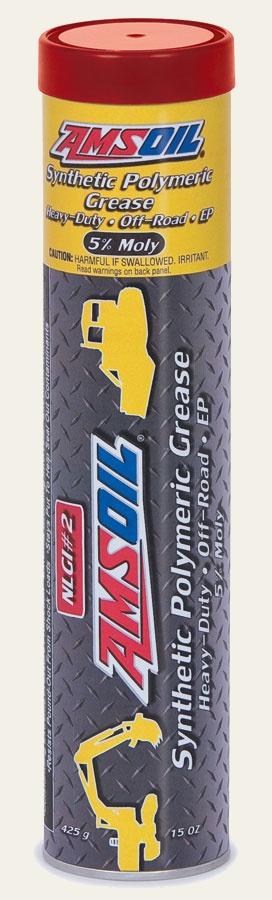 AMSOIL Synthetic Polymeric Off-Road Grease is ideal for heavy-duty, heavy-load-bearing applications operating in the adverse conditions found in agricultural, construction, landscaping, logging and mining environments. Applications include power shovels, drag lines, wheel and track loaders, excavators, bulldozers, skid steers, dump trucks and other heavy-duty equipment with heavily-loaded pivot pins, king pins, bucket pins and bushings. AMSOIL Synthetic Polymeric Off-Road Grease is a perfect choice for Caterpillar equipment requiring 5 percent moly for pin and bushing applications. AMSOIL Off-Road Grease provides superior performance, protection and longevity in heavy-duty, off-road applications.