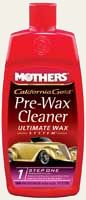 This is the foundation of the Ultimate Wax System, preparing paint for Sealer & Glaze and Pure Carnauba Wax. Pre-Wax Cleaner removes oxidized paint, old wax buildup and other contaminants, cleaning and shining paint. This mild polish smoothes the edges of larger imperfections and removes small scratches. Paint's appearance is dependent on a good polishing—Mothers Pre-Wax Cleaner should be used at least once or twice a year.